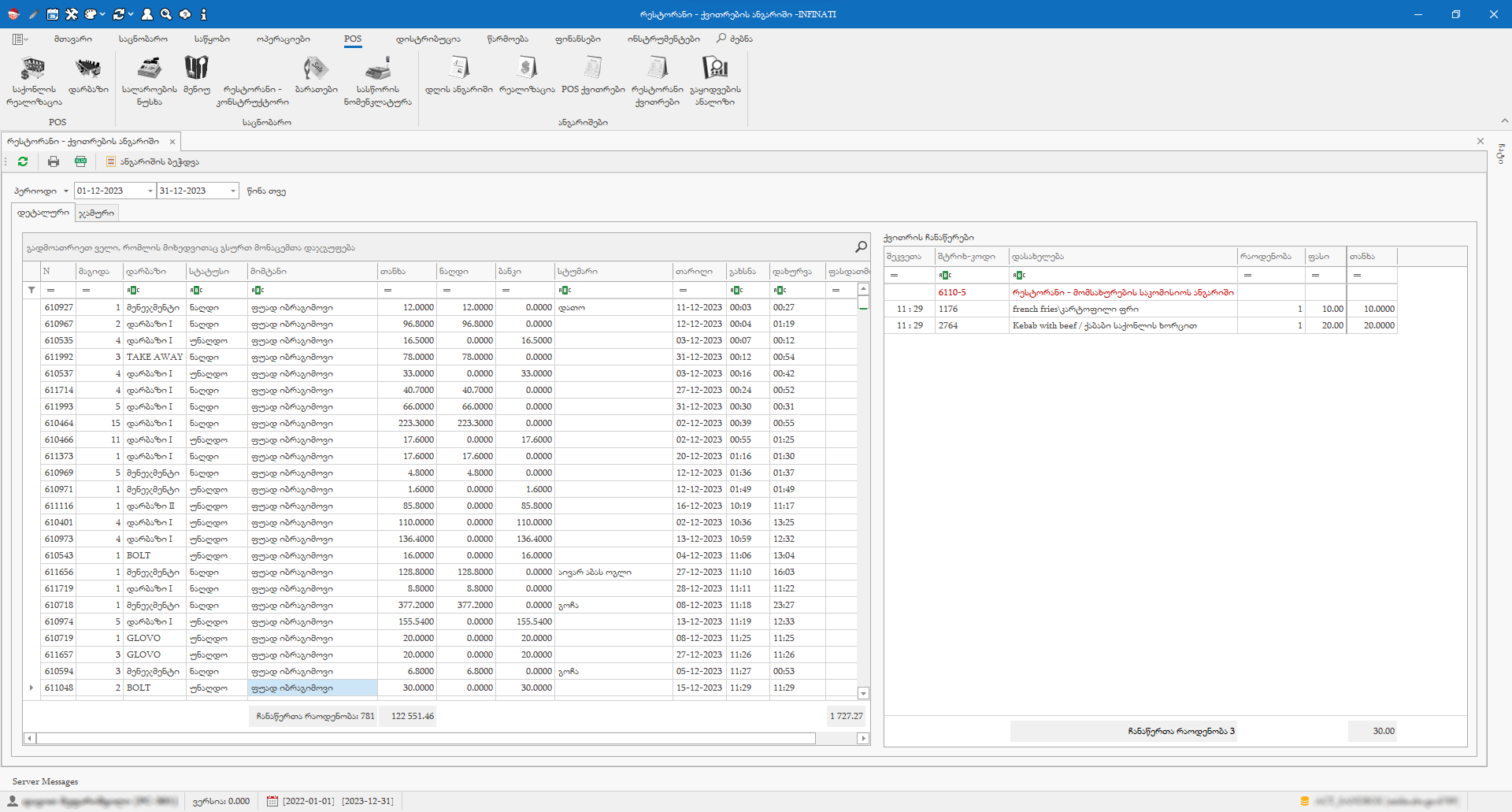 POS-ის მოდული უზრუნველყობს მაღაზიებში, თუ სხვა ნებისმიერ საცალო სავაჭრო წერტილში, პროდუქციის რეალიზაციას და პროცესების სრულ ავტომატიზაციას. პროგრამის მარტივი ინტერფეისი საშუალებას იძლევა სამუშაო პროცესი მარტივი და კომფორტული გახადოთ. მოდული მუშაობს, როგორც offline, ასევ online რეჟიმში. ასევე შეგიძლიათ ისარგებლოთ სასაჩუქრე და ბონუს ბარათების მრავალ-ფუნქციური სისტემებით.